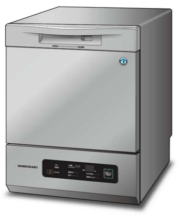● The use of hot water directly from a facility’s water heater for wash and rinse cycles eliminates the time necessary to heat water. The top and bottom rotational spray arms serve to shorten the wash cycle to six minutes by spraying water from the top and bottom to clean dishes. Up to 10 racks can be washed per hour by alternating between the two standard racks. Innovations to remove the heating function decrease power consumption and eliminate the need for a dedicated power outlet.