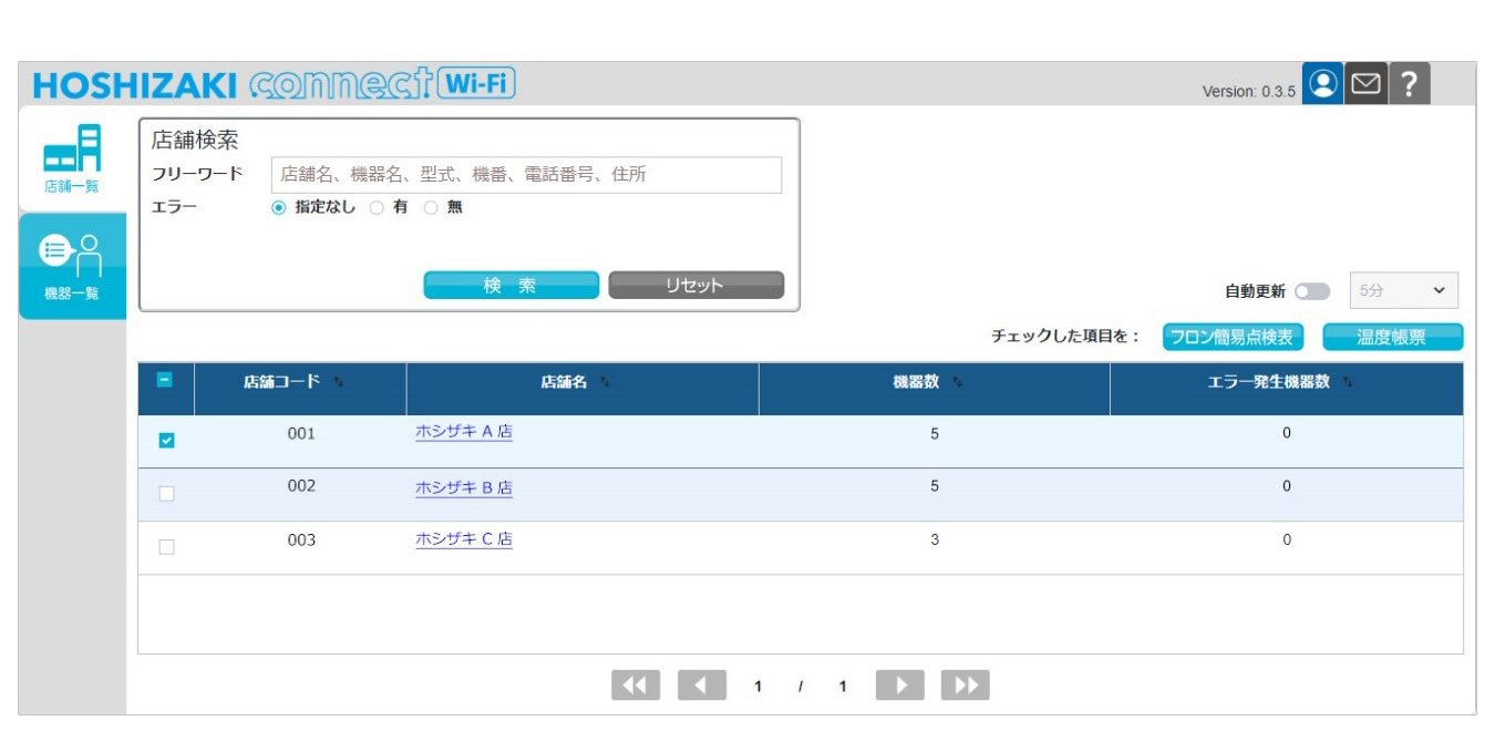 For customers that manage multiple stores or facilities, integrated management makes for efficient operations as equipment operating status is grasped for the organization as a whole. For example, previously errors issued by equipment could not be known until the actual equipment display could be seen, but they can now be verified remotely. With refrigerators and freezers, the lower the temperature setting, the more electricity is used, so using the system the customer can verify and manage differences in temperature settings among stores and facilities to set temperatures for higher energy efficiency, which are displayed onsite.