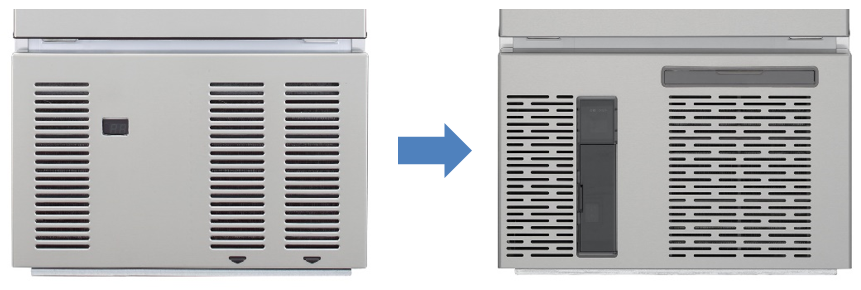 Air intake/exhaust louver: Left: Previous model; Right: New model